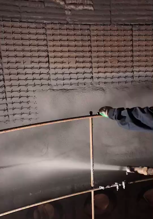 國內某5000立方米以上大型高爐爐身噴涂施工現場